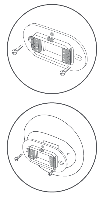 Insert any remaining wires into the corresponding terminals on the Back Plate. Then push excess wires into the wall.