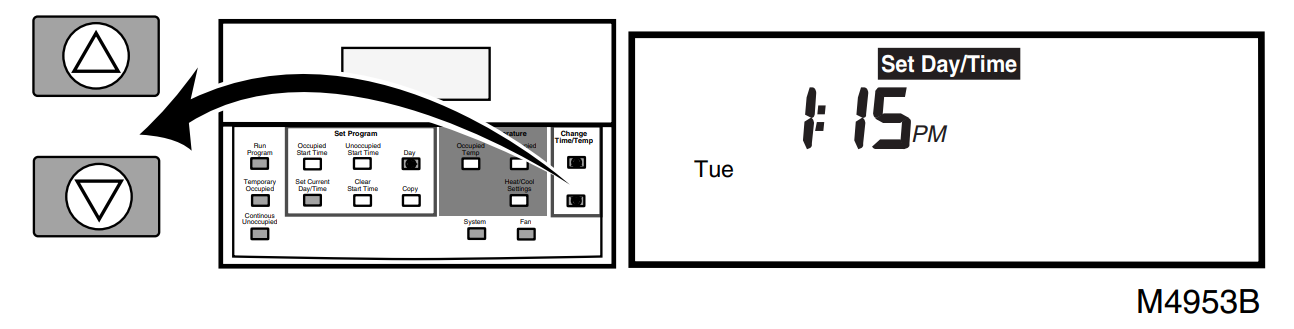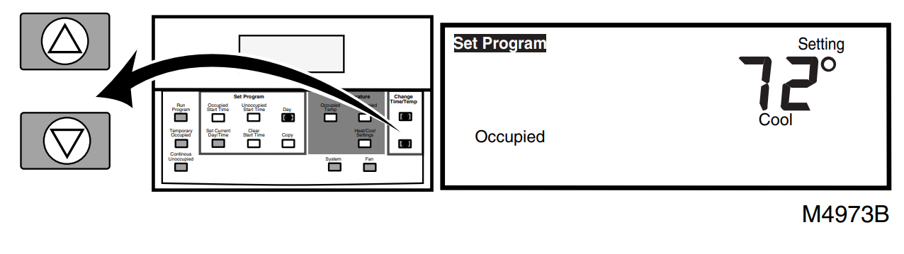 The thermostat can be set for two Occupied and two Unoccupied times for each day of the week (28 independent time settings). Temporary Occupied key provides quick temporary temperature changes for increased occupant comfort. The Continuous An unoccupied key provides energy-efficient operation for extended periods of time.