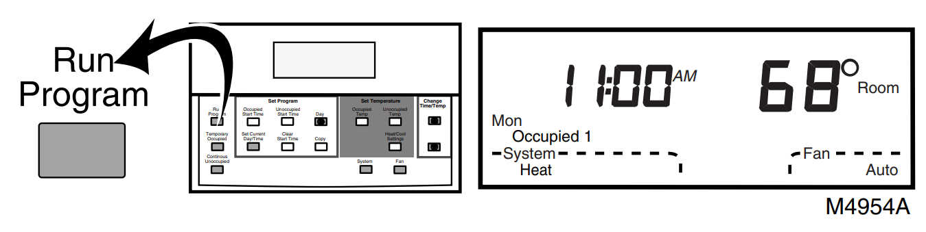- Press Run Program to cancel the temporary setpoint and to return to the program.