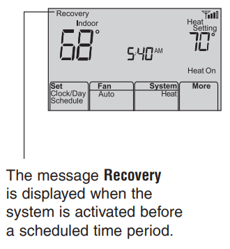 Once your Wi-Fi thermostat is installed, it will display the home screen. Portions of this display will change depending on how you are viewing it.