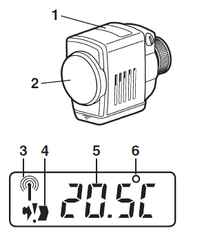 The setpoint is normally defined and controlled at the room thermostat. To override the local setpoint, turn the adjustment dial of the radiator controller unit until the desired set temperature (between 5 – 30 °C) is displayed. This local setpoint override remains valid until a time program from the room thermostat overwrites it automatically. In order to open or close the radiator valve completely turn the adjustment dial until “OFF” (closed) or “ON” (opened) is displayed. (If temperature limits are set, “ON”/”OFF” is not displayed – see installation manual 4.5.1).