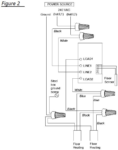 - Make sure the house power supply voltage matches the voltage rating of the floor heating system. Do not apply 240 VAC to a 120 VAC rated system.
