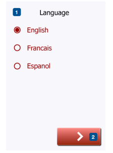 First you must set the language. The chosen language will become the default language for the thermostat. The language can be changed under Menu/User Settings/Language.